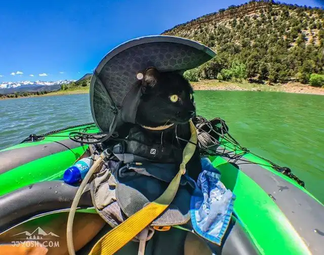 Отметим, что кот и его хозяин по имени JJ Yosh проживают в живописнейшем городе Боулдер, Колорадо, США. Саймон у парня появился два года назад, и с тех пор они с ним вместе путешествуют как по суше, так и по воде. При этом, как правило, Саймон во время похода находится в рюкзаке своего доброго хозяина.