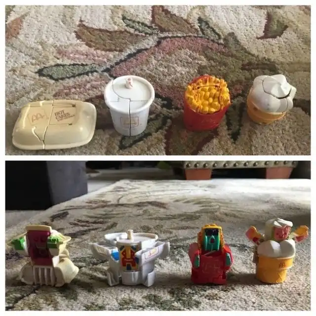 Коллекция старых игрушек из McDonald’s, превращающихся в роботов.