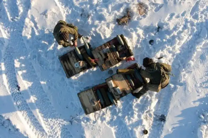 Десантники у самоходного артиллерийского орудия Нона 2S9.