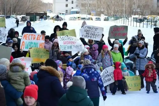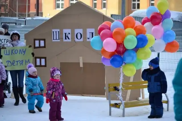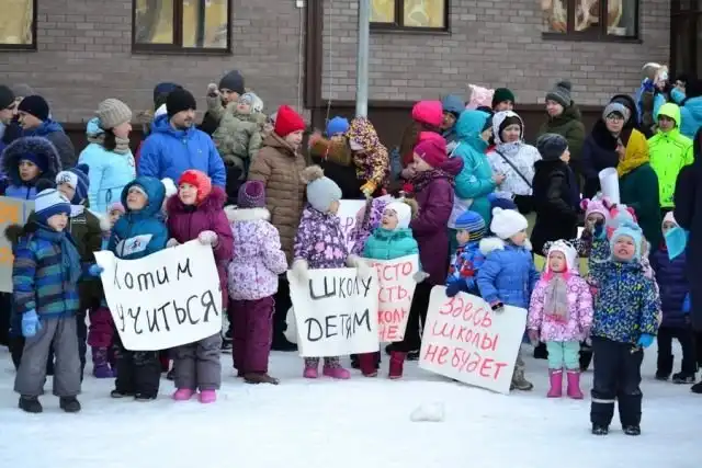 В одном из новых районов Казани местные жители вышли на акцию протеста, в рамках которой построили картонную школу. Дело в том, что застройщик обещал, что в новом жилом районе появятся и детский сад и школа. Детский сад действительно построили и сдали в эксплуатацию вместе с первыми домами в 2015 году, а вот школу так строить и не начали. Выделенное для нее место, переданное в собственность муниципалитету, по-прежнему пустует. На пустырь и вышли местные жители с детьми, чтобы обратить на свою проблему внимание чиновников. Ближайшая школа уже переполнена и в нее перестали принимать детей, поэтому жильцы вынуждены возить детей в школу в 2,5 км.