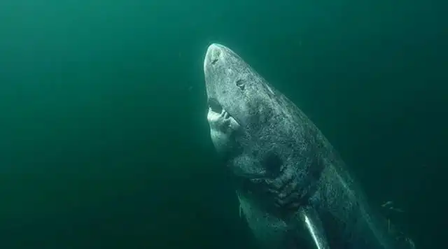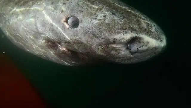 Перед вами гренландская акула (полярная акула), которая была выловлена в северной части Атлантического океана у берегов Гренландии. На хищницу наткнулись ученые Копенгагенского университета с группой морских биологов, которые тут же принялись изучать рыбу длиной 5,5 метров. Этот вид акул известен тем, что они очень медленно растут и долго живут. В год полярные акулы вырастают всего лишь на 1 см и достигают половозрелости лишь в возрасте 150 лет. Радиоуглеродный анализ хрусталика глаза помог установить феноменальный возраст акулы - 512 лет.