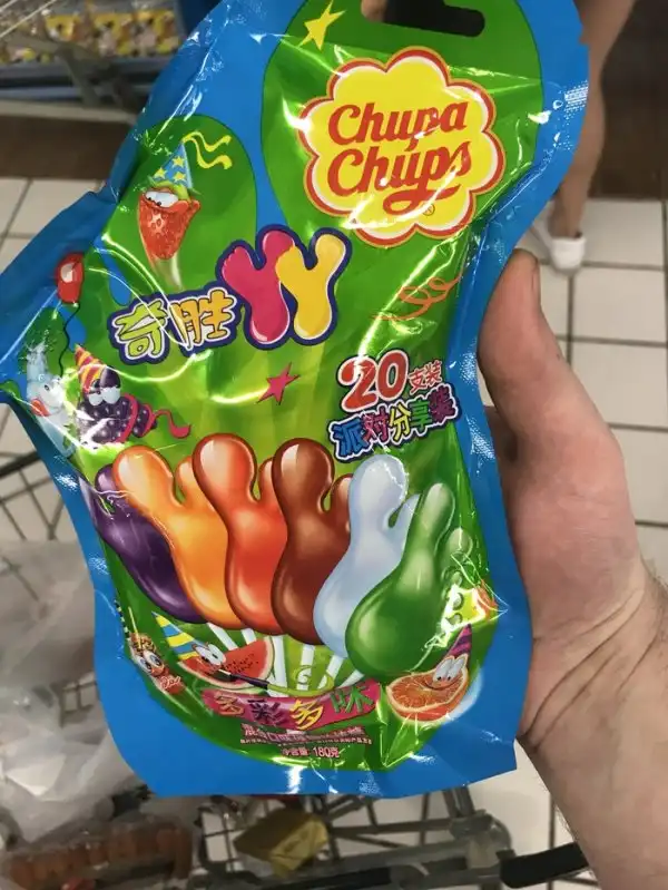 Ничего особенного во вкусе этих чупа-чупсов нет, обычный набор из нескольких фруктовых карамелек на палочке. Тут весь вопрос к форме. Сделаны они в форме ступни. То есть вам напрямую предлагают, извините за выражение, «сосать ноги». В рот мне ноги какие-то для юных фетишистов Китая.