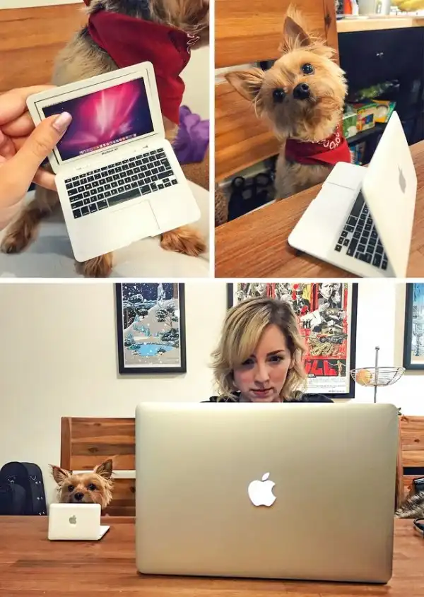 «Я купила мини-лэптоп для нашей собаки, чтобы она хотя бы могла делать вид, что помогает семье»