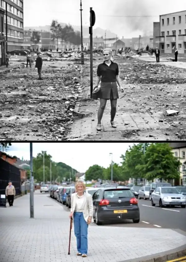 Участница схватки за Богсайд (Дерри, Ирландия) снялась на том же месте