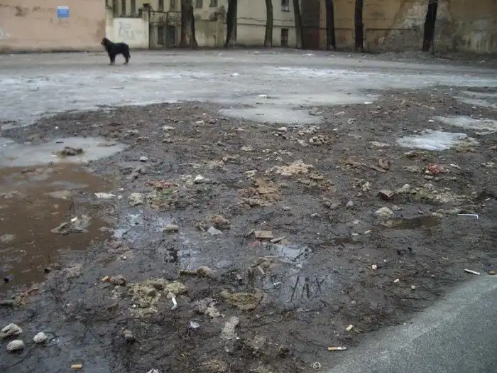 Ну и собачьи экскременты, конечно же. куда им деваться, если их никто не убирал. Понятно, что, со временем, перегниют, но когда из под снега выползают сотни "кучек" становится тошно
