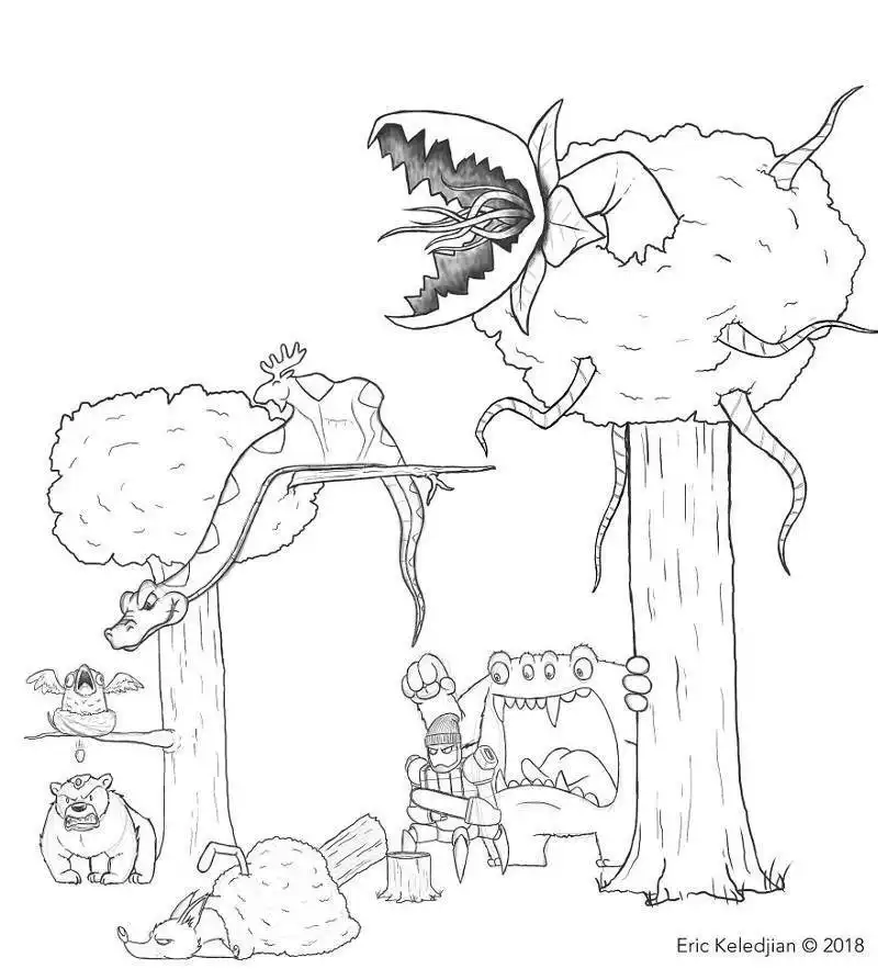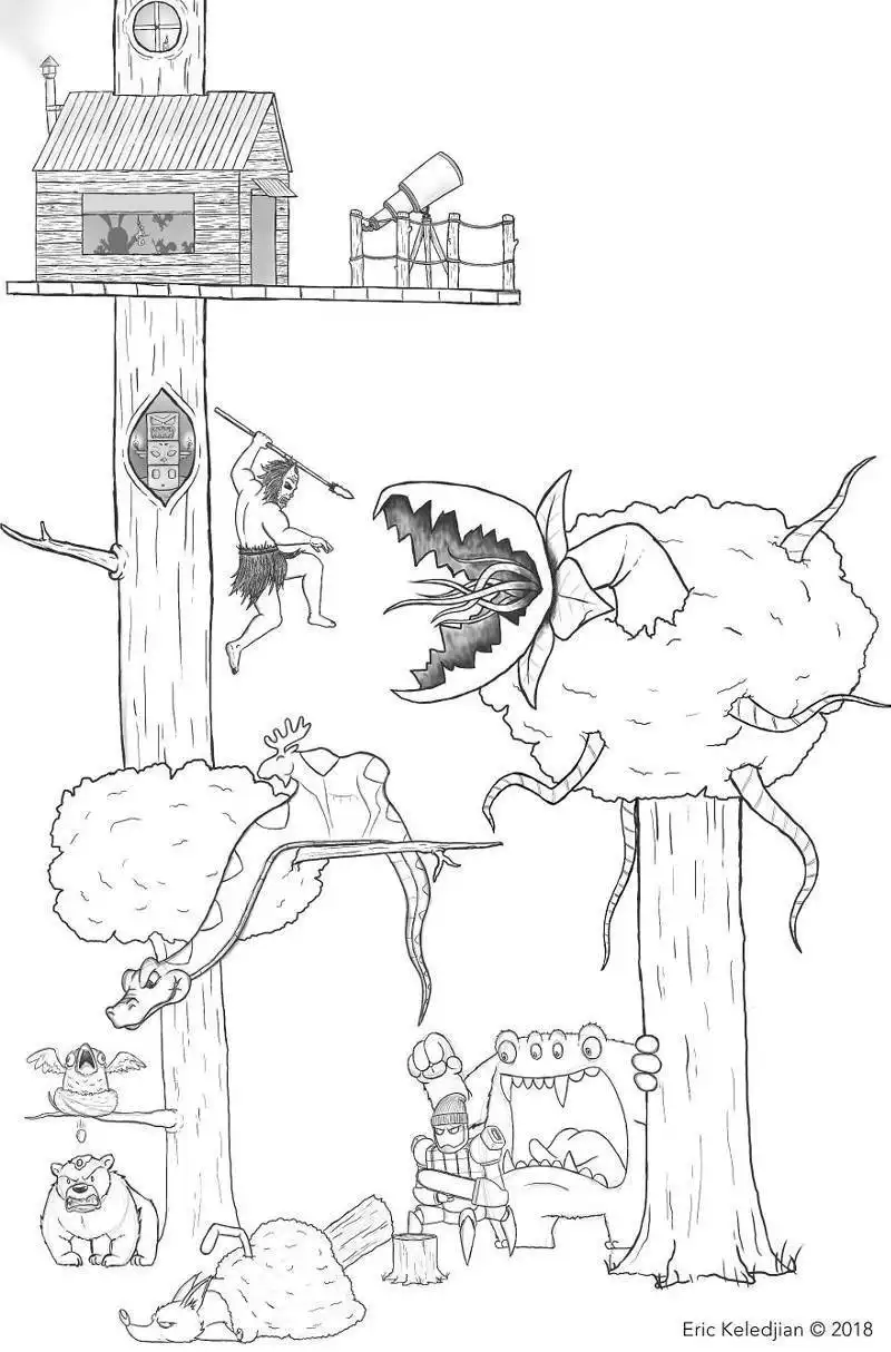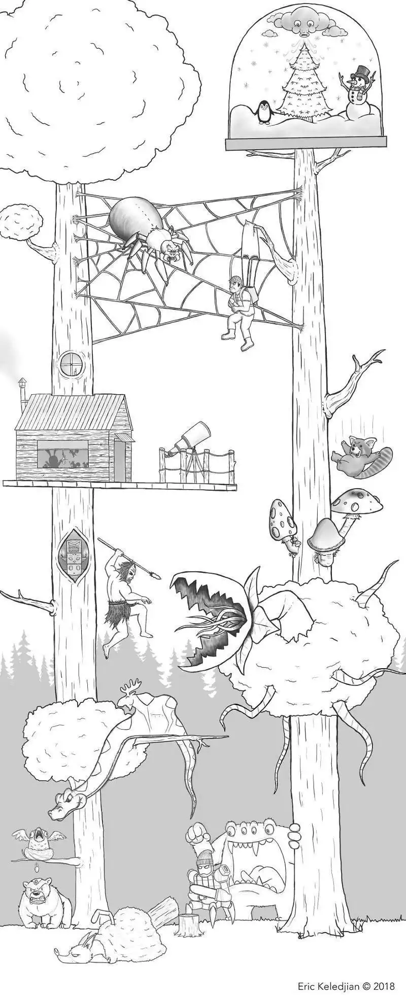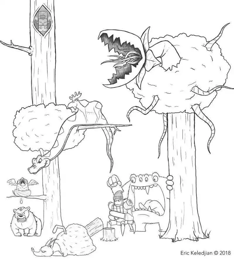 Иллюстратор из Сан-Диего (США) Эрик Келеджян решил в течение 19 дней рисовать по одному персонажу, добавляя их к своей первой картинке с медведем. В результате за почти что 3-недельный срок ему удалось изобразить весьма интересную и масштабную композицию, состоящую из различных героев, каждый из которых имеет свою собственную историю.