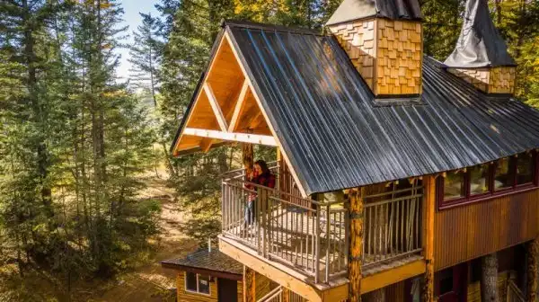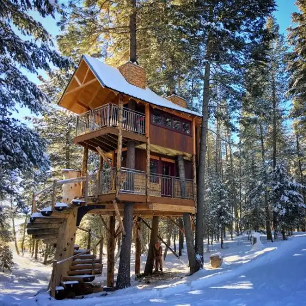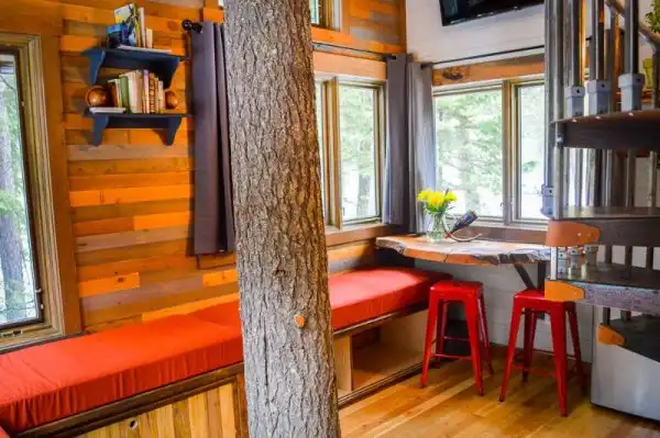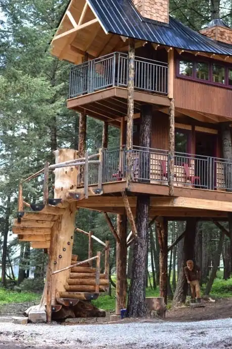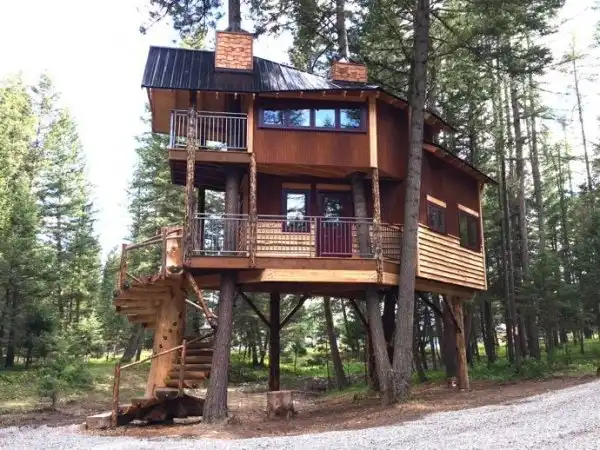 Недалеко от Национального парка Глейшер в Скалистых горах, штат Монтана, находится отель на деревьях, точнее он построен вокруг пихт. В уютном строении площадью 152 кв.метра есть все, что нужно для комфортного отдыха: роскошные спальни, кухня с плитой и посудомоечной машиной и ванная комната с душем.