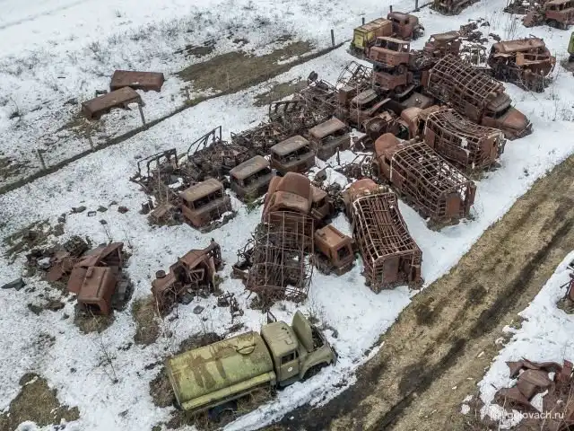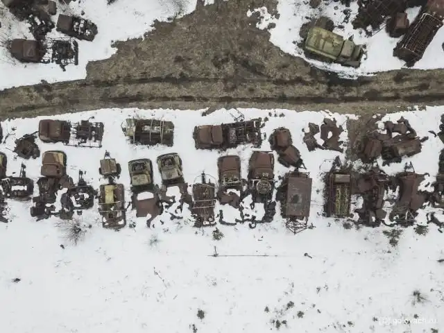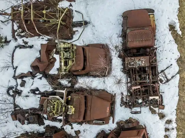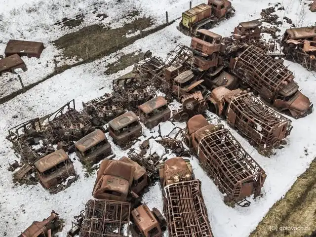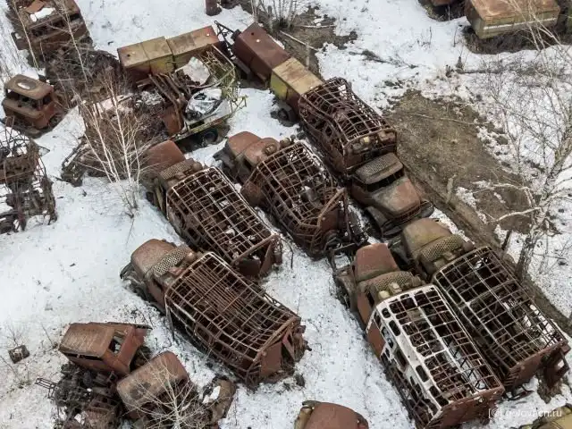 Блогер наткнулся на кладбище сгоревших военных машин в лесу