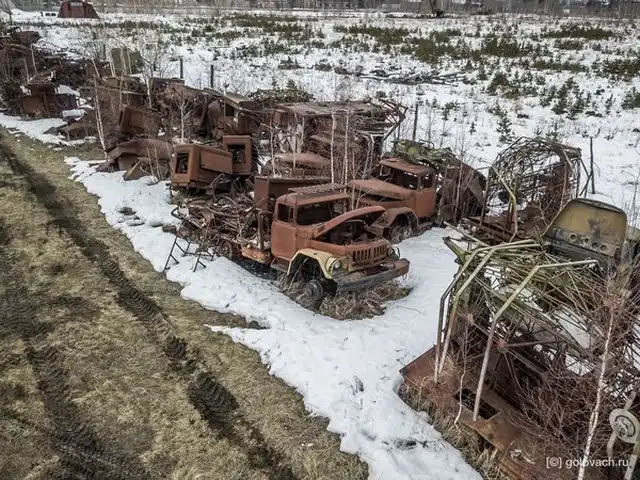 Интересную находку в одном из лесов в окрестностях Москвы сделал блогер, который выехал смотреть на весеннюю природу. Осматривая лес с дрона, он обнаружил десятки сгоревших военных машин. Самое удивительное, что глухая территория охранялась.