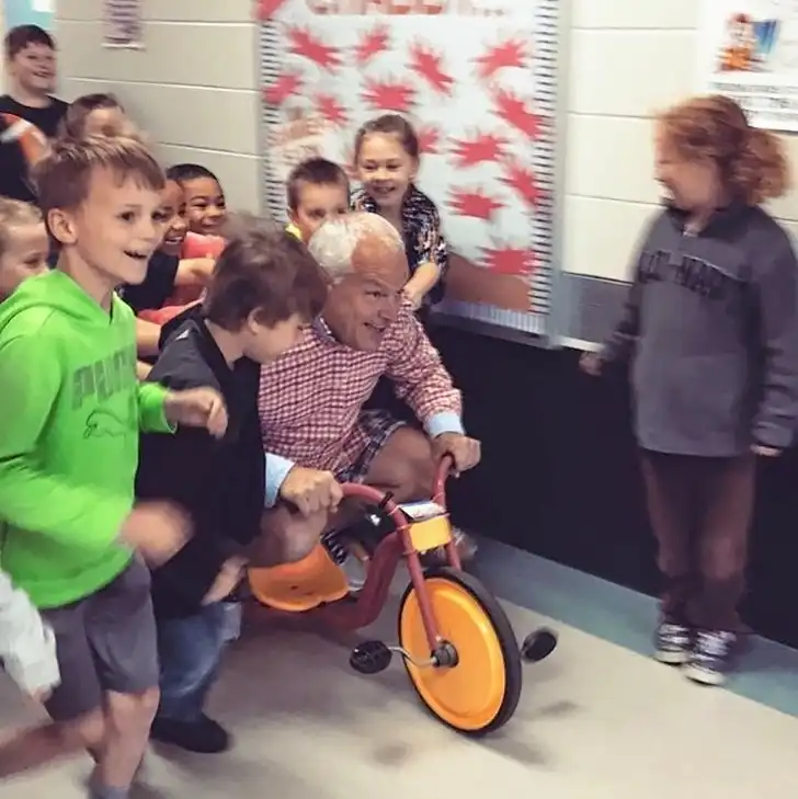 Директор школы бросил ученикам вызов — читать в течение 1 000 минут. Победители столкнули его с горы на трехколесном велосипеде, в то время как он был в странной одежде, да еще и надетой наизнанку