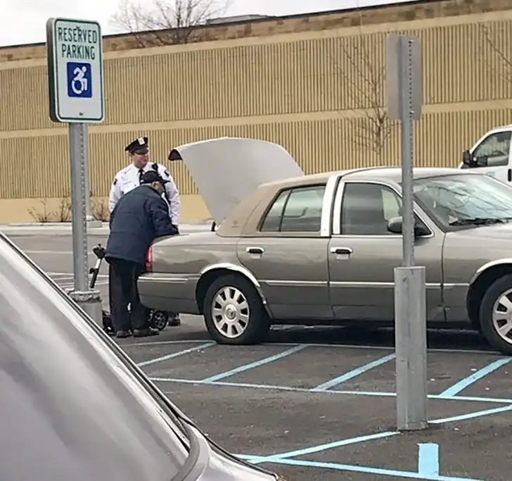 Каждый день этот охранник помогает ветерану войны справиться с инвалидным креслом, чтобы тот смог пойти выпить чашечку кофе со своими товарищами