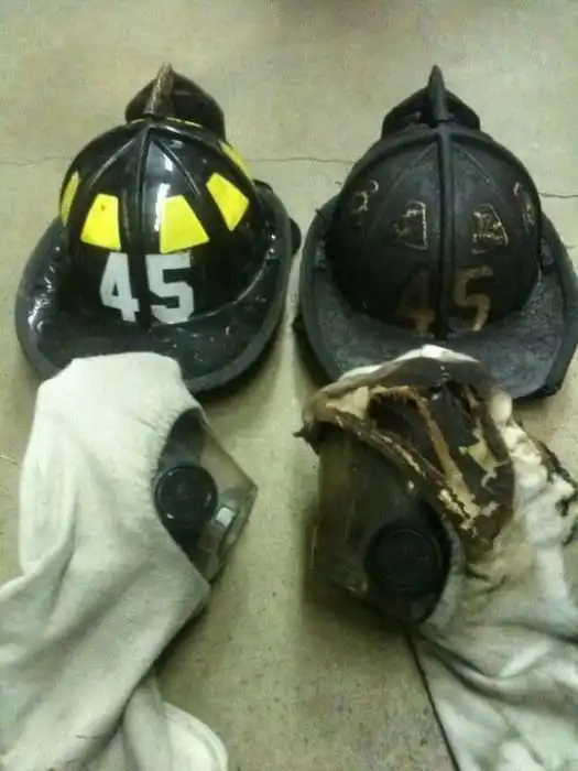 Порой пожарным приходится работать в настолько тяжелых условиях, что даже средства индивидуальной защиты не могут выдержать высоких температур. Перед вами последствия длительного пребывания вблизи источника огня.