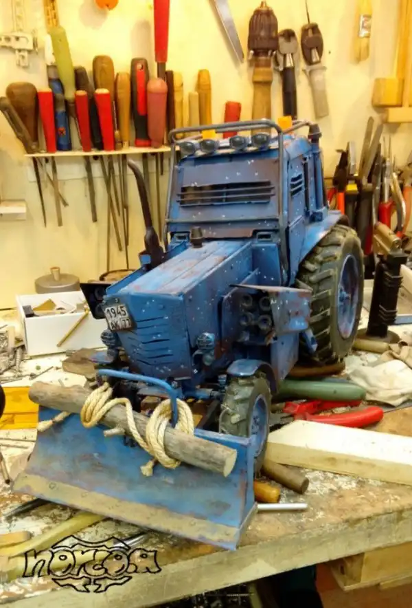 Полностью функциональный колесный трактор Мтз-80. Полностью ручная работа, масштаб 1:10