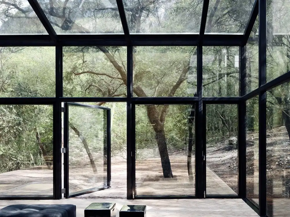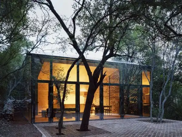 Стратегия архитекторов заключалась в стремлении соответствовать и в чём-то подражать окружающей природе. Поэтому объём, содержащий социальные области дома, имеет оболочку из зеркального стекла, которое отражает пышное окружение, растворяя здание в природной среде, одновременно впуская её внутрь пространства.