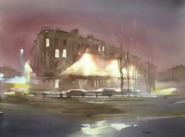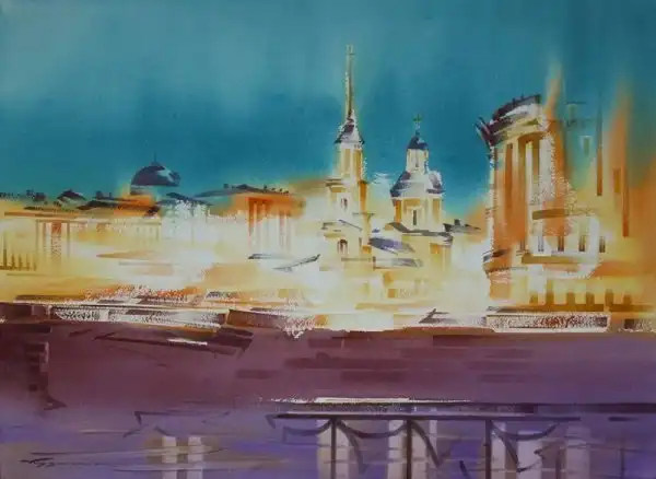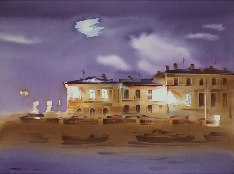 Работы Константина Куземы отличаются особым изяществом. Филигранно подобранные цвета и самые уместные оттенки позволяют самым выгодным образом подчеркивать достоинства любого выбранного им сюжета. Причем, по духу своему, он абсолютно петербургский живописец. Его вдохновение настояно атмосферой Северной Пальмиры, пронизано холодными ветрами и наполнено отсветами Невы и ее каналов.