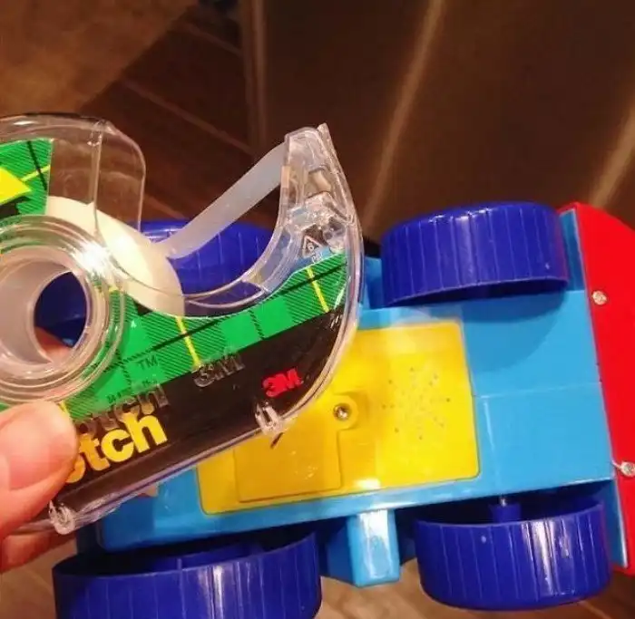 Если заклеить скотчем микрофон звучащей игрушки, ее звук станет далеко не таким пронзительным и противным.