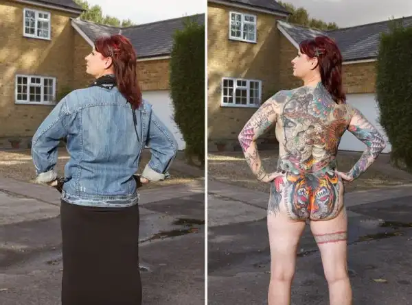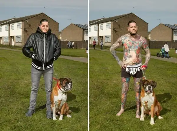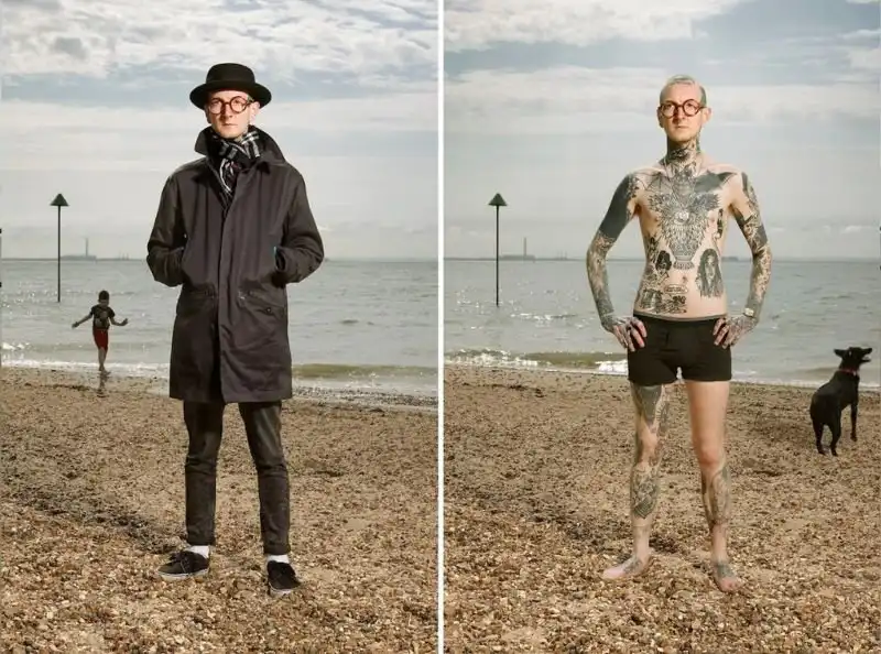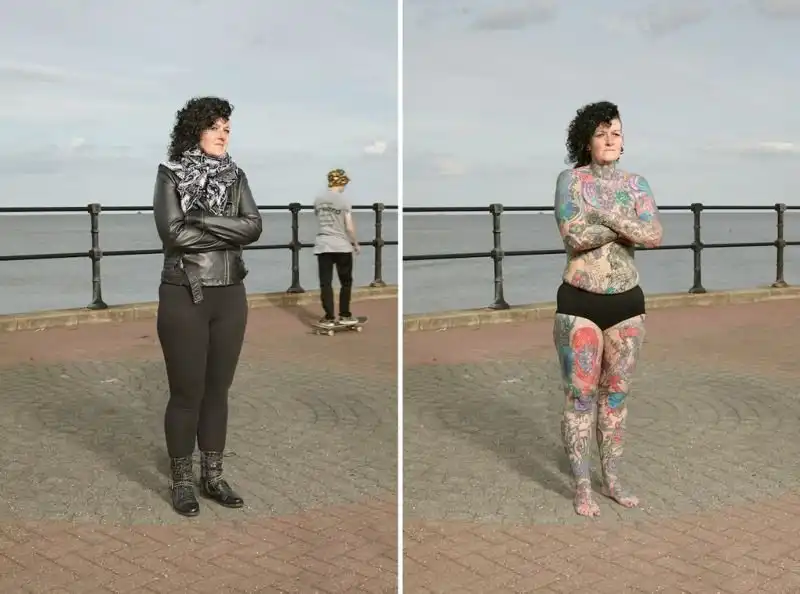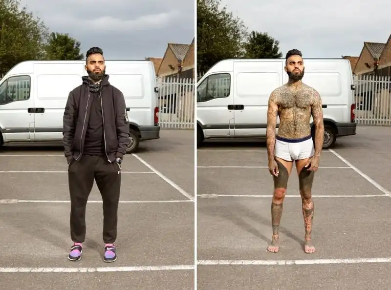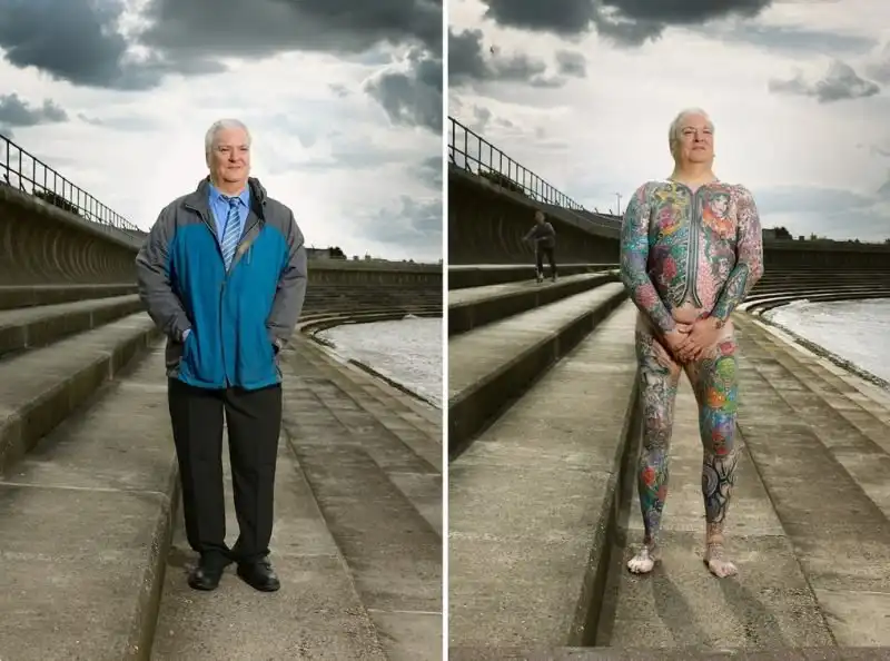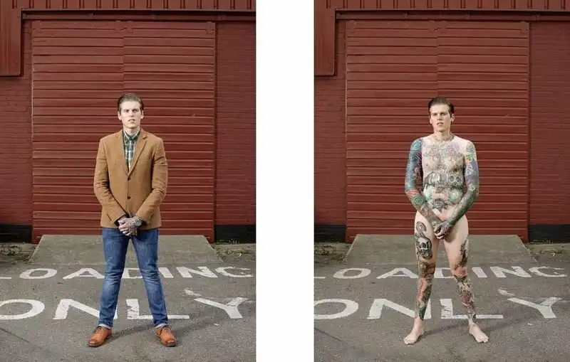 Вот уже три года британский фотограф Алан Паудрилл продолжает работу над своим проектом "COVERED". Он снимает татуированных людей в одежде и нагишом. Его фото удивляют, ведь под костюмами солидных дядь и ботанов скрываются татуировки на все тело.