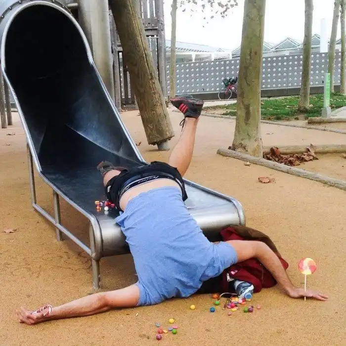 Сандро Джордано — талантливый итальянский фотограф, который вот уже несколько лет занимается съёмкой своего фотопроекта под названием «На грани. Тело без сожалений». В нём автор показывает людей, которые настолько устали от жизни, что внезапно упав, даже не пытаются подняться.