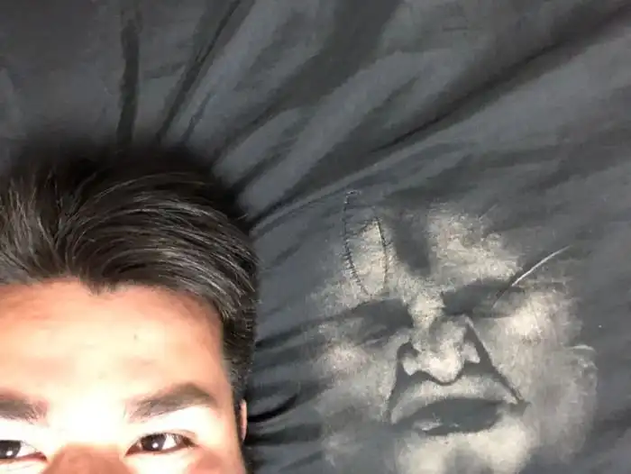 Некоторые девушки используют так много косметики, что могут буквально оставлять отпечатки своего лица. Именно так и произошло в этом забавном случае, когда лик отпечатался на простыне.