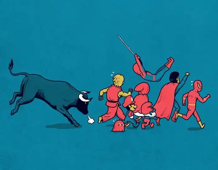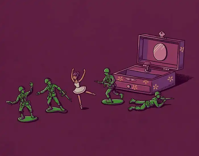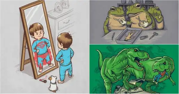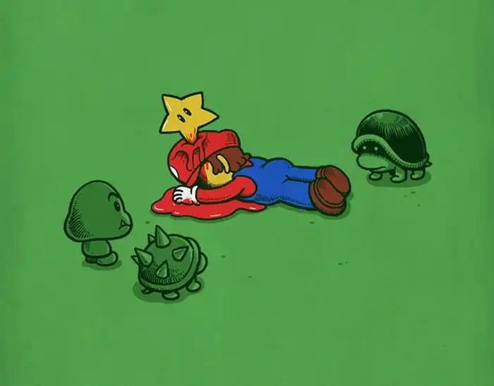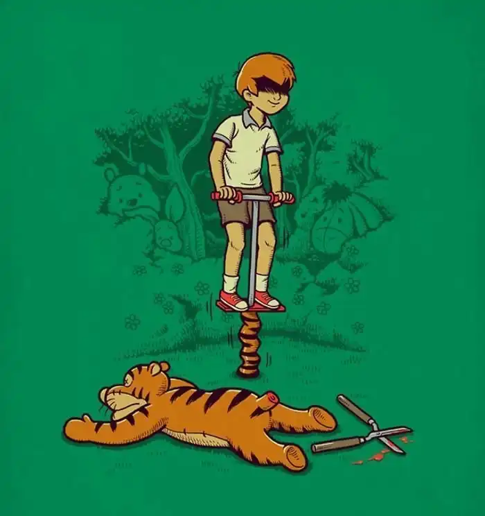 Что будет, если смешать капельку черного юмора с элементами поп-культуры? Получатся иллюстрации Бена Чена! Свой стиль тайваньский художник описывает как "черный, юмористический и полный фантазий". Чен заимствует персонажей из фильмов, телешоу, сказок, видеоигр, чтобы объединить их уникальным образом и создать довольно странные, закрученные и даже пугающие ситуации.