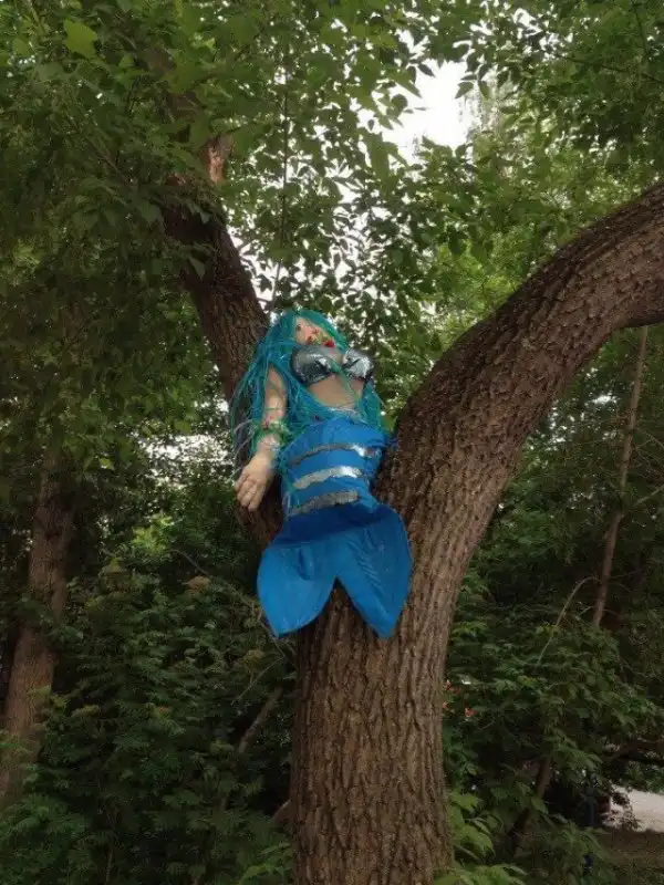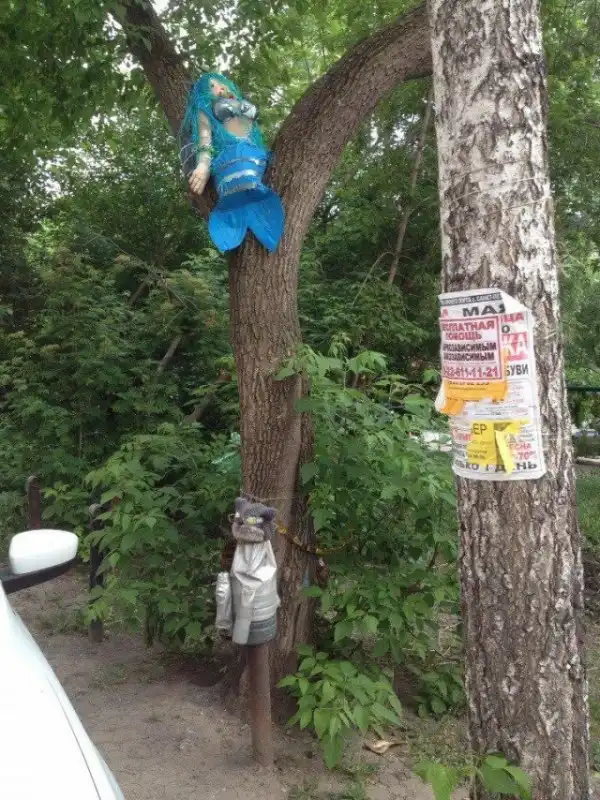 В Екатеринбурге на улице Пальмиро Тольятти во дворе одного из домов обнаружен шикарнейший пример ЖКХ-арта. Местные работники метлы и грабли вдохновились творчеством Пушкина и соорудили, не побоимся этого пафосного слова, инсталляцию на радость начальнице ЖЭКа. Вот только смущает, что кота ученого посадили на кол, русалка на ветвях не сидит, а распята на древе. Об остальных героях в стихе Александра Сергеевича не сказано, но по ним можно снимать "Страх и ненависть на Урале", в лайт версии, без чертового эфира и мескалина.