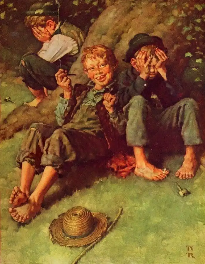 В другом эпизоде Том, Гек и их ровесник Джо курят трубку, как настоящие пираты. Непривычные к табаку Том и Джо уходят в кусты«искать нож» и Гек находит их позже бледными и лежащими. Ребята во времена Марка Твена отлично понимали, что мальчишек стошнило от отравления никотином (и им было стыдно в этом признаться), современный ребёнок спросит, что с ними такое произошло и нашли ли они потерянный нож. Кроме того, он вряд ли поймёт, зачем Том и Джо курили так долго и упорно, если им сразу было неприятно. Сейчас подростки реже курят именно по этой причине — зачем терпеть неприятное? Конечно, кроме ребят из семей, где свободно и много курят при детях и табак — дело привычное вплоть до уже сформировавшейся аддикции.
