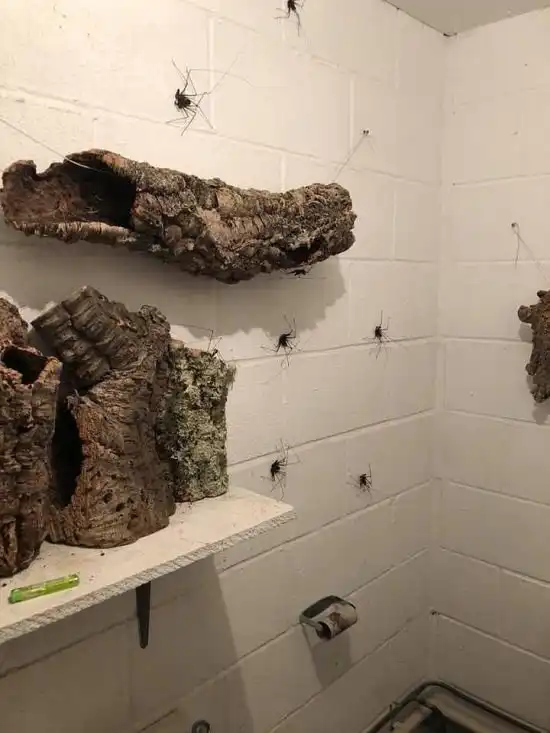 Вот такой "милый" туалет, в котором совершенно не хочется задерживаться, создал владелец британского магазина розничной торговли пауками. Уборную обставили кусками пробковой коры, на которой теперь гуляют жгутоногие пауки. Несмотря на свой пугающий внешний вид, эти пауки не ядовиты, но в крайних случаях они могут постоять за себя и причинить неслабую боль.