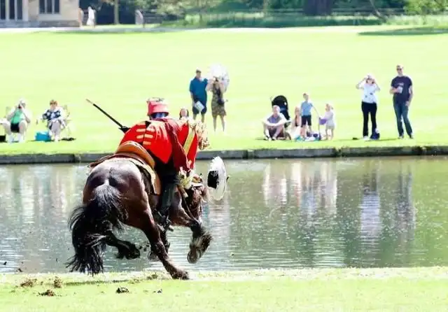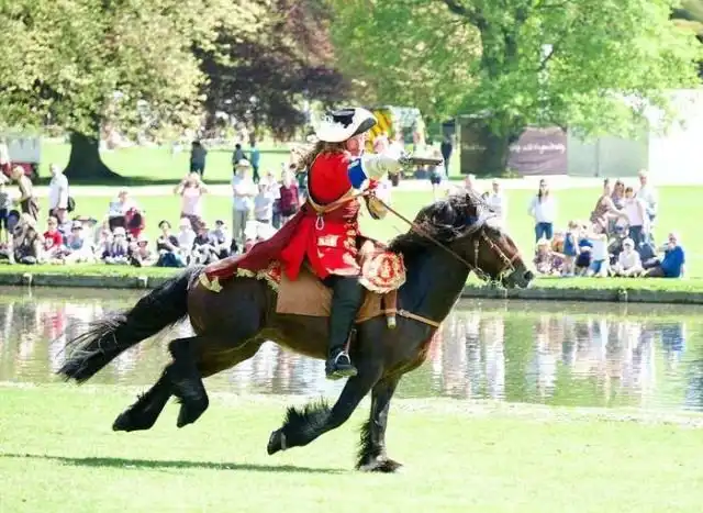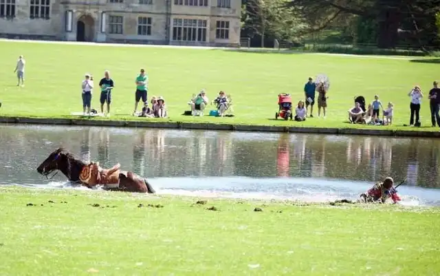 На фестивале исторической реконструкции в Великобритании конь короля Чарльза II испугался звуков выстрелов, звучавших в ходе импровизированных боевых действий, и "подмочил репутацию" своего всадника.