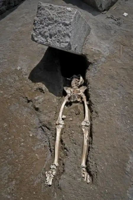 В археологическом парке «Помпеи» обнаружили останки мужчины, погибшего во время извержения вулкана Везувий в 79 году нашей эры. Останки обнаружили под 300-килограммовой каменной плитой во время раскопок на месте древнего римского города.