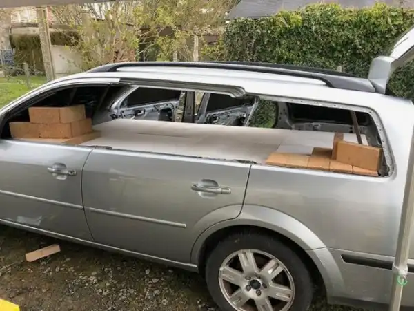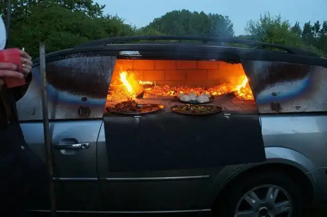 Буфаллино вырезал у автомобиля окна, вытащил всё внутреннее оборудование, колёса и сидения. Он также установил внутри каркаса так называемую «полку» и обложил её изнутри кирпичами для сохранения тепла. Для розжига огня художник использовал исключительно поленья.