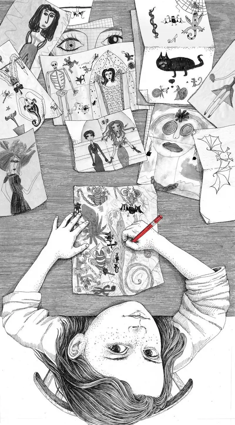 У нее классический сказочный стиль и готовность исследовать все, от средневековой легенды до дикой психоделии, она художник, который обращается к красивой, дотошной и декоративной иллюстрации с намеком на волшебство.