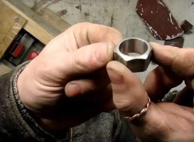 Небольшой фотоотчет по изготовлению кольца из обычной гайки. Вот так при наличии золотых рук и необходимых инструментов обычную гайку можно превратить в довольно таки стильное украшение.
