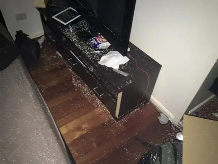 Парень обнаружил на своем теле и по всему дому странные липкие частицы, которые невозможно смыть и видны они только при съемках со вспышкой.