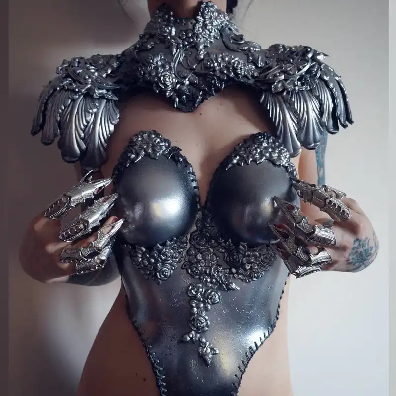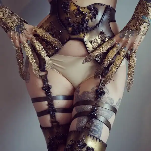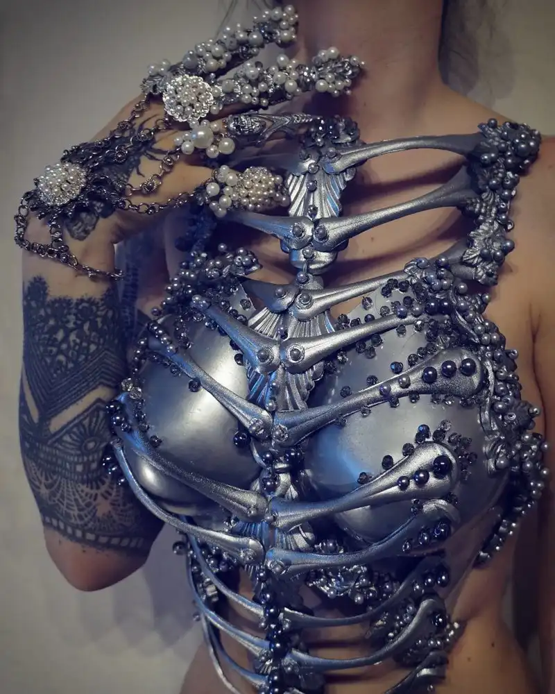 Художник по костюмам Агнешка Осипа из Польши закончила Академию искусств в городе Лодзь и всегда увлеклась тёмной мистической атмосферой. Её работы, среди которых корсеты, головные уборы, будуарные портупеи и многое другое, демонстрируют слияние между фольклорными орнаментами и женственностью костюмов. Агнешка работает со многими творческими людьми по всему миру и создаёт просто потрясающие вещи.