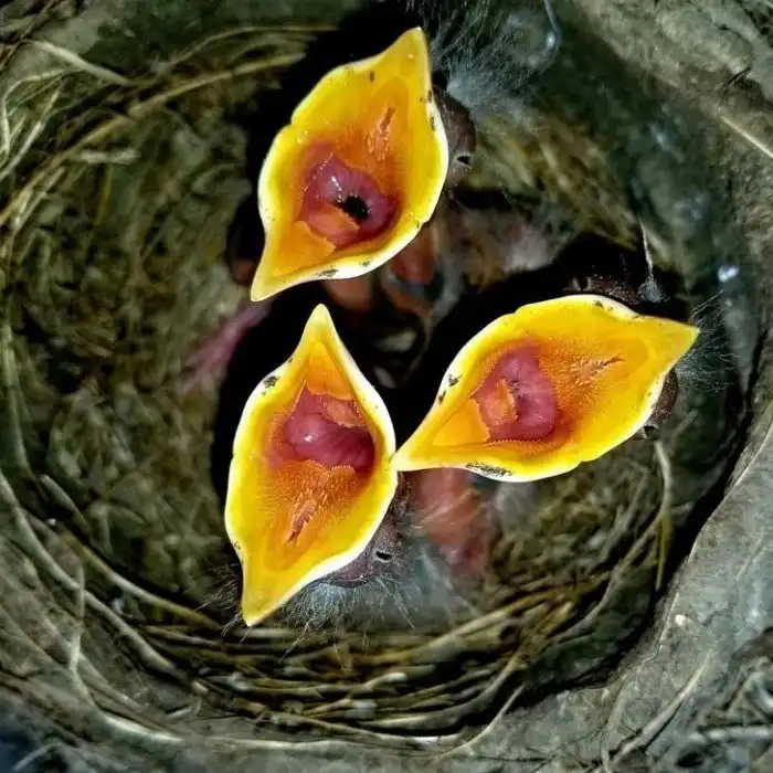 10. Эти экзотические цветы — вовсе не цветы, а голодные птенцы малиновки