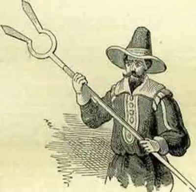 Это оружие носит название мэнкетчер (в переводе с английского - «человеколов»). Это металлический захват, который первоначально использовался для того чтобы сбросить с лошадей закованных в латы всадников, не вступая с ними в близкий бой. Он использовался в Европе на протяжении нескольких столетий, но утратил свою эффективность с появлением огнестрельного оружия. Тем не менее, мэнкетчер применяли вплоть до конца 18 века, когда с его помощью ловили беглых преступников.