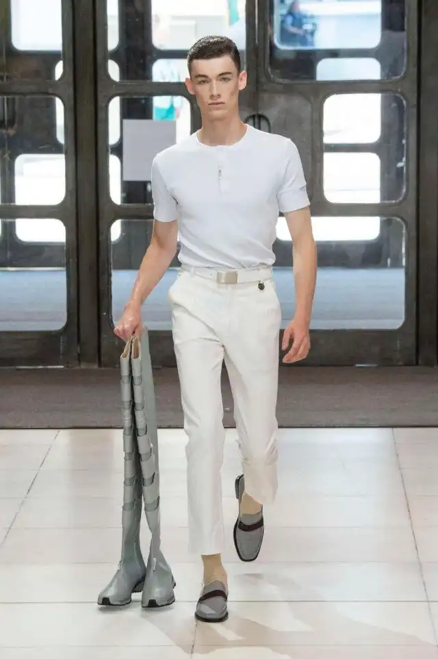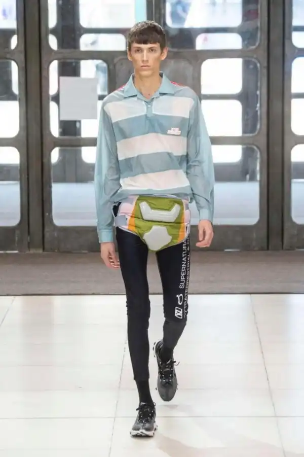 В понедельник завершилась неделя мужской моды в Лондоне. Больше всех профильная пресса писала о работах китайского дизайнера Ксандера Чжоу (Xander Zhou). Гость из Поднебесной показал что в сезоне весна-лета 2019 будут в тренде киберпанк, короткие шорты из 80-х и беременные мужчины! И если с реквизитами для реквизитом для Bladerunner 2049 еще понятно, то к чему надутые животы у "моделей"?