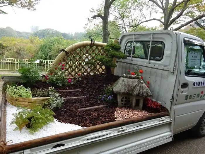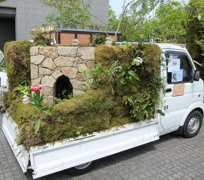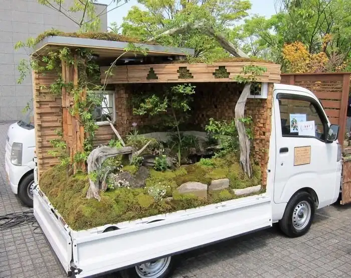 Каждый год Японская федерация ландшафтного дизайна проводит конкурс «Конкурс садов Kei Truck» (Kei Truck Garden Contest). Свои работы здесь представляют компании, занимающиеся озеленением и ландшафтным дизайном. Небольшие сады и прочие инсталляции они создают в кузове маленьких грузовых автомобилей Kei Truck, получивших широкое распространение в странах Азии. Давайте взглянем на творения участников конкурса.