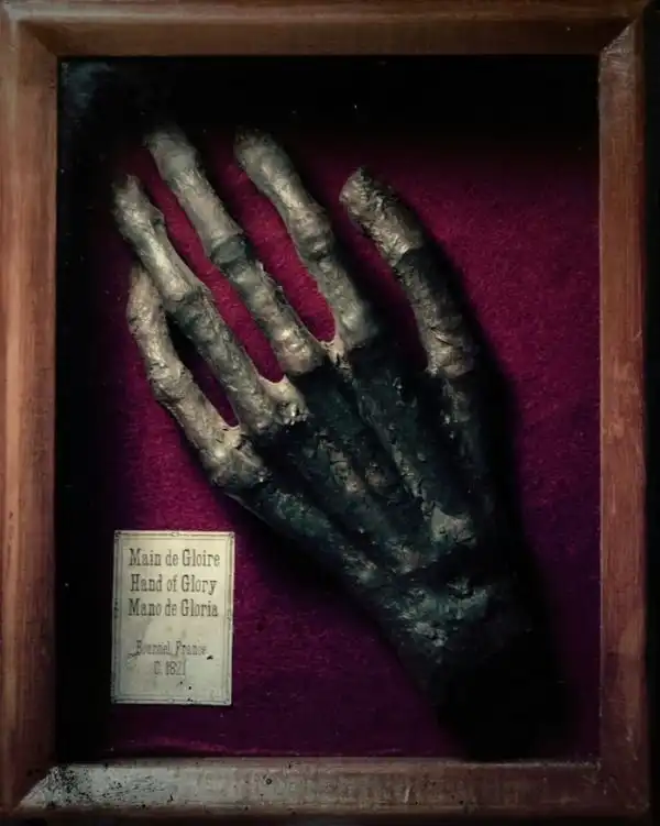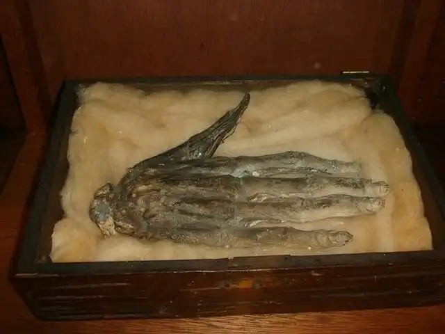Вот например, одна из таких рук в музее в Уитби. Такими артефактами пользовались разбойники, причем их можно было встретить еще несколько веков назад. У убитых отрезали конечность, после чего она просто высушивалась и далее могла использоваться, как подставка для свечи. Если же руку выдерживали в жире, то потом ее использовали в качестве факела. В этом случае поджигали сами пальцы. Согласно одним источникам, свет руки может увидеть только держащий её, другие утверждают, что её свет заставлял людей цепенеть от ужаса. Последнее недалеко от истины, представьте, что к вам ночью забирается вор, держащий такой факел.