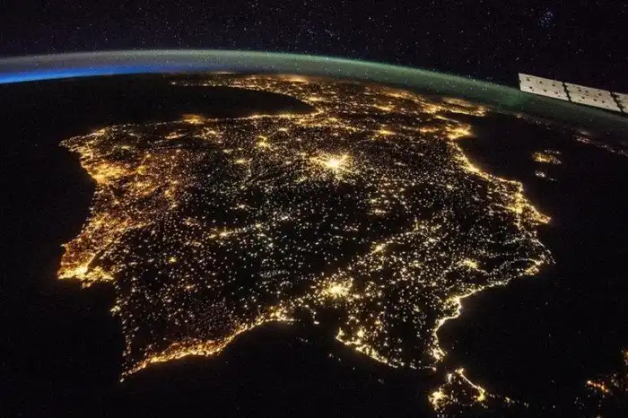 2. Вечерний Пиренейский полуостров — Испания и Португалия в огнях