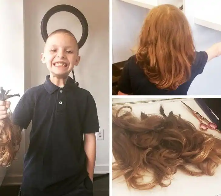 <<Мой сын в течение четырех лет терпеливо отращивал волосы, и наконец на прошлой неделе мы их состригли и отдали на благотворительность. Из них получится великолепный парик>>