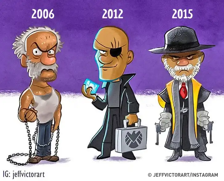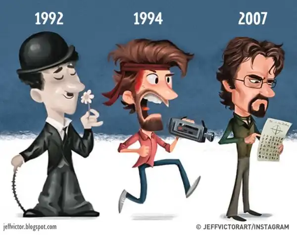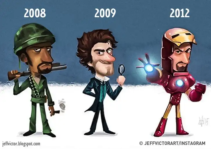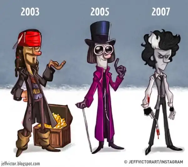Иллюстратор из Лос-Анджелеса Джефф Виктор (Jeff Victor) рисует красивые шаржи, на которых оживают персонажи культовых фильмов. Серия его работ «Эволюция актеров» активно обсуждается в сети и с каждым днем становится популярнее. На рисунках художника — от 6 до 10 ролей, которые показывают, как менялось амплуа актеров за время их работы в кино, и мы выбрали самые яркие из них.