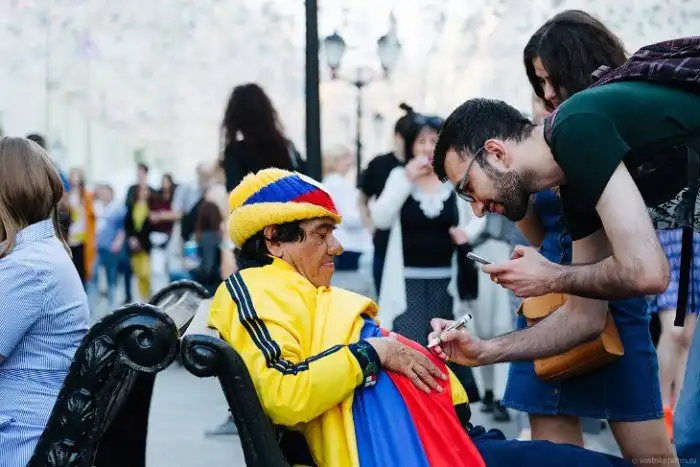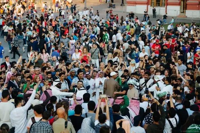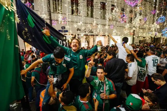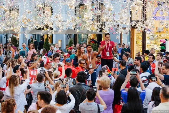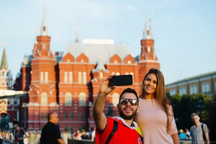 Еще одно популярное развлечение: фотографироваться с фанатами. Те стоят с флагом и позируют, а к ним собирается очередь на фото.