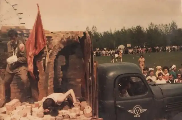 Эти редкие кадры специальных парадных платформ были сделаны в городе Сморгонь, БССР, в 1975 году во время парада к 30-летию победы в Великой Отечественной войне. Основной идеей таких платформ было напомнить о всех ужасах, через которые прошли люди в годы войны. Думаю, излишние описания к данному посту просто не нужны. Очень сильные и трогательные снимки.