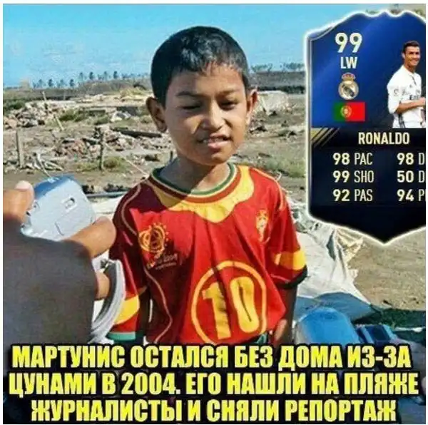 Эта история началась еще в 2004 году, когда мальчик по имени Мартунис лишился дома из-за цунами в Индийском океане, забравшей жизни 230 тысяч человек. 7-летний индонезийский мальчик провел в одиночестве почти 19 дней, а его мать и двое братьев погибли. На момент, когда мальчика нашли после стихийного бедствия, на нем была надета футболка сборной Португалии, что привлекло внимание португальской футбольной федерации и лично самого Криштиану Роналду.