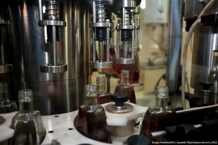 Современные технологические линии розлива позволяют разливать напитки мембранным холодным способом для максимального соблюдения стерильных условий. Сначала пустую бутылку устанавливают на технологическую ленту…