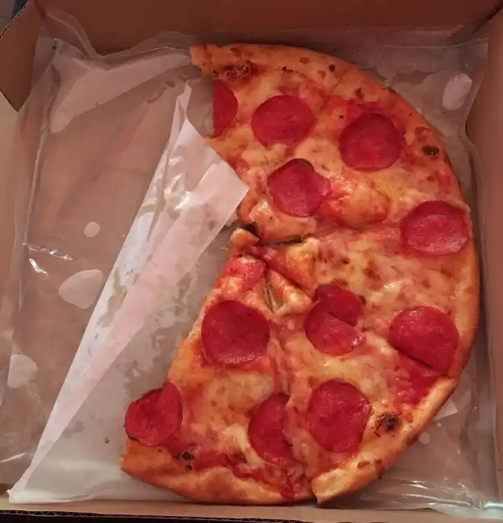 Чтобы пицца за время доставки не остывала, под нее кладут пакет с горячей водой