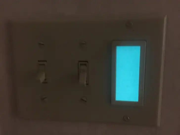 Выключатель легко найти в темноте, так как на нем есть светящееся окошко