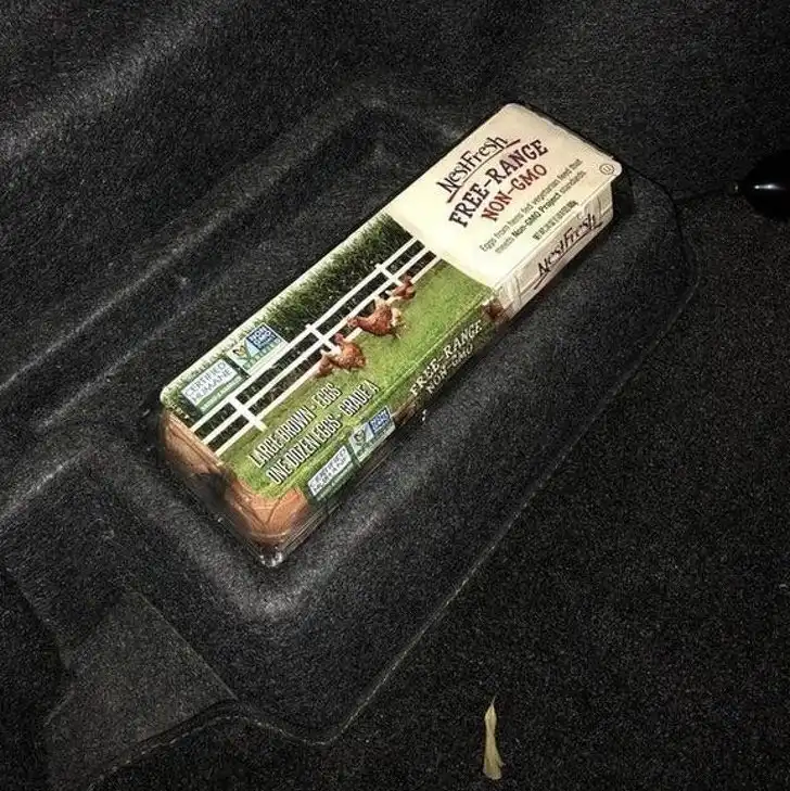 В багажнике машины есть специальный отсек под коробку с яйцами