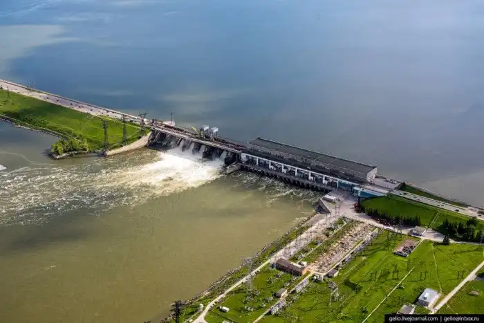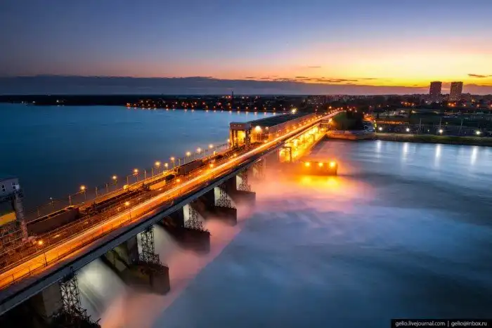 Строительство Новосибирской гидроэлектростанции на Оби длилось больше десяти лет — с 1950 по 1961 год. За это время, помимо основного здания, ГЭС обросла комплексом сооружений: водосборной бетонной плотиной, двумя земляными плотинами, дамбой и судоходным шлюзом. Общая протяжённость всех подпорных сооружений составляет чуть менее 5 километров.